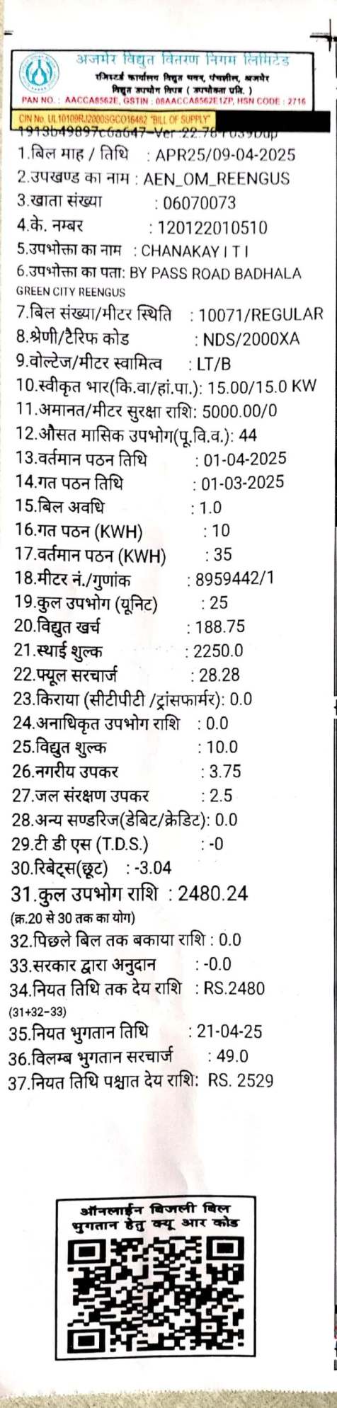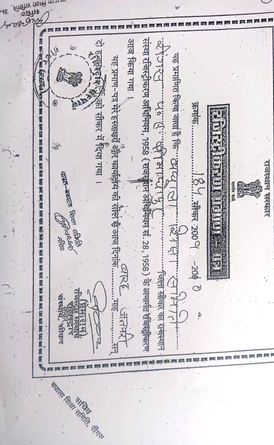 Address of the Institute Ward No. 10, Badhala Geen City, Near Railway Over Bridge, Bypss Road, N.H. 52 Reengus, Distt. Sikar (Raj.) 332404